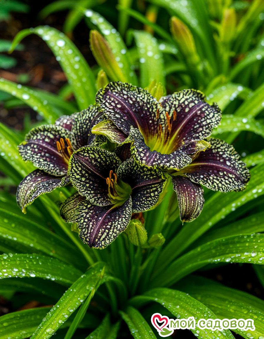 Защита от вредителей и болезней: Лилейники относительно устойчивы к вредителям и болезням, но иногда могут поражаться слизнями, тлей или ржавчиной. При необходимости применяют соответствующие меры защиты.